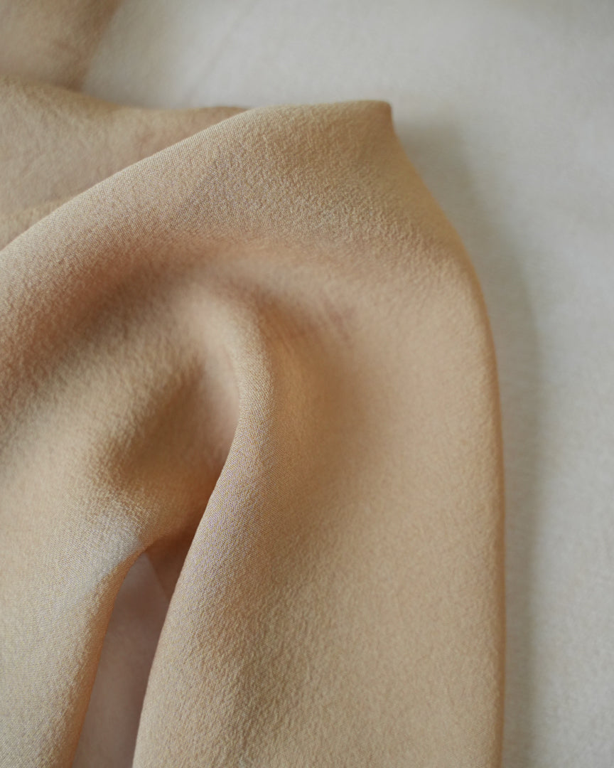 透け感のある軽やかなシルク素材で、顔まわりに巻いても重たくならないサイズ感。