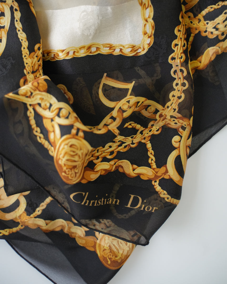 Christian Dior gold chain motif scarf