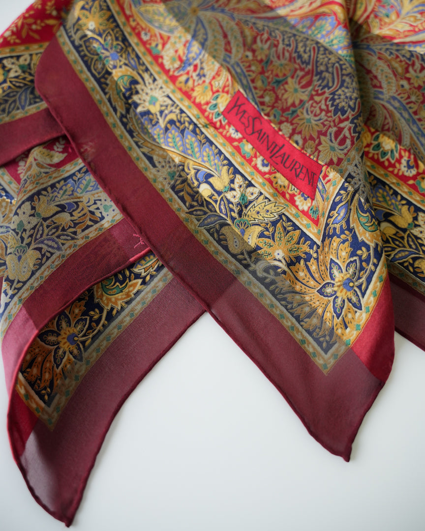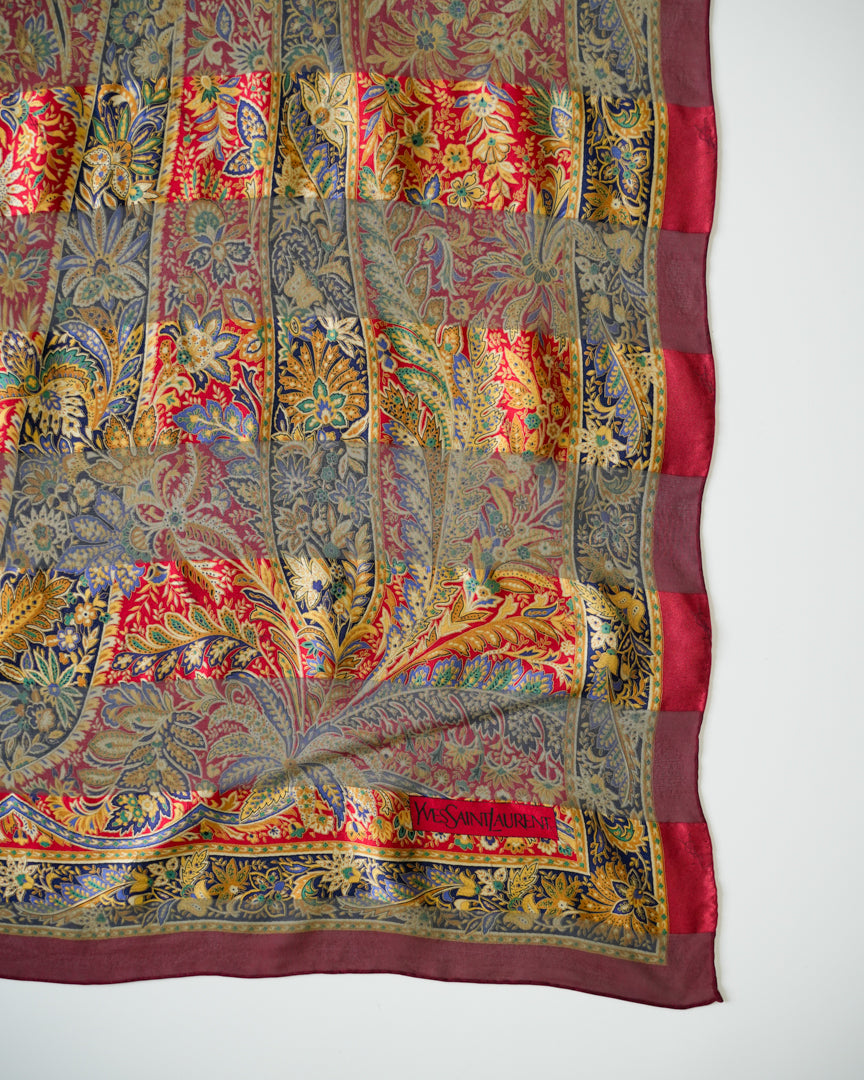 MODEL_Yves Saint Laurent Burgundy Paisley Scarf