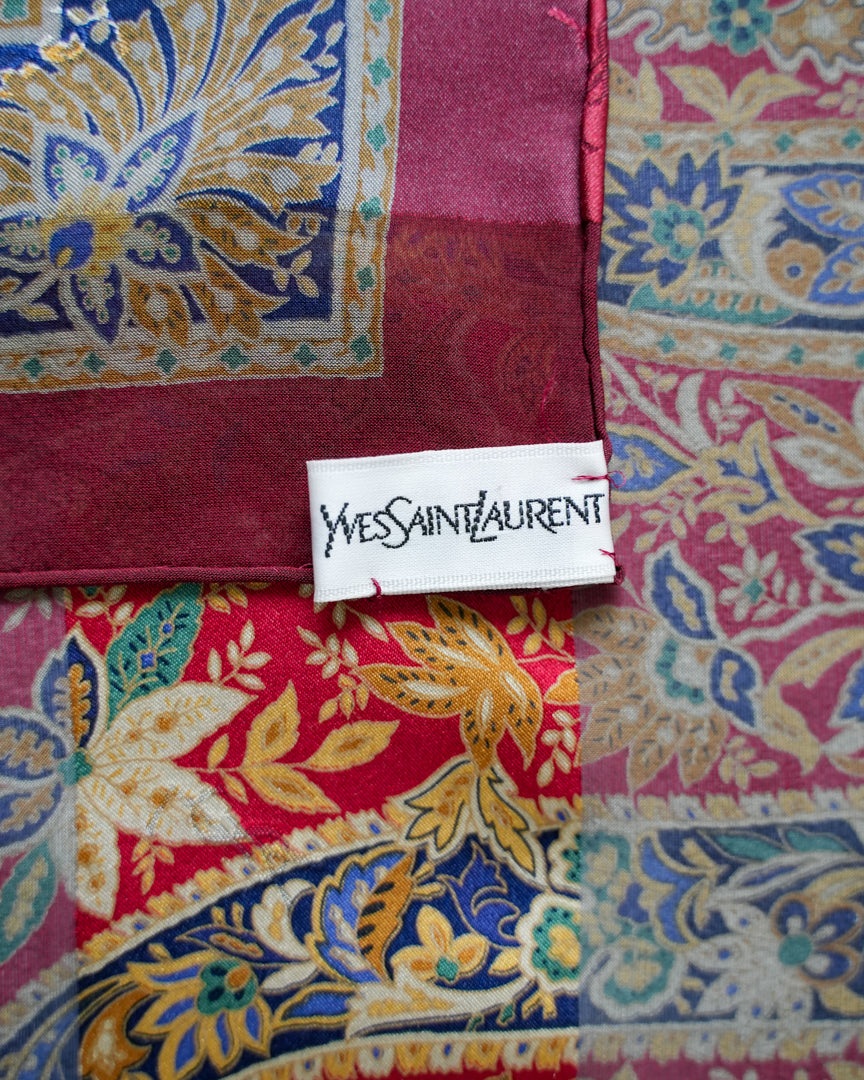 サンローランが「モロッコ」や「ボヘミアン」的な要素を多用していた時期の特徴でもあるペイズリーや植物をモチーフにしたオリエンタルなアイテムです。